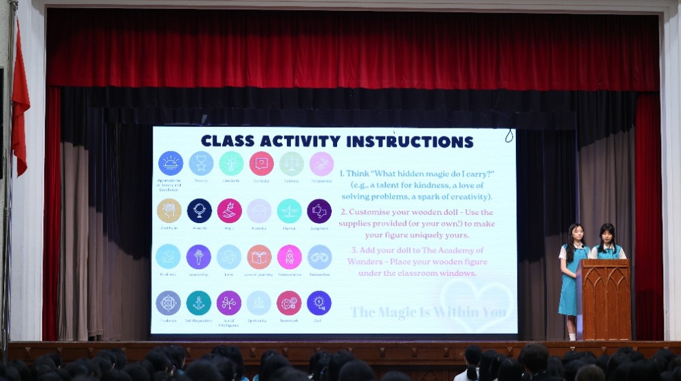 The Student Values Formation Team performed an original play titled “The Magic Within” to highlight this year’s core value of reverence. The play’s core message affirms that each person is uniquely created in the image of God, and that others should not define our worth. To be valued by others, we must first value and respect ourselves.